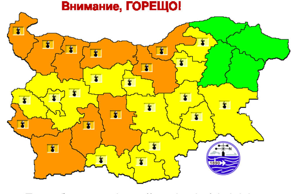 За региона е в сила жълт код, като се очаква жегата да достигне между 34 и 37 градуса на сянка. Трябва да се пият повече течности и да не се излиза в най-горещите часове.