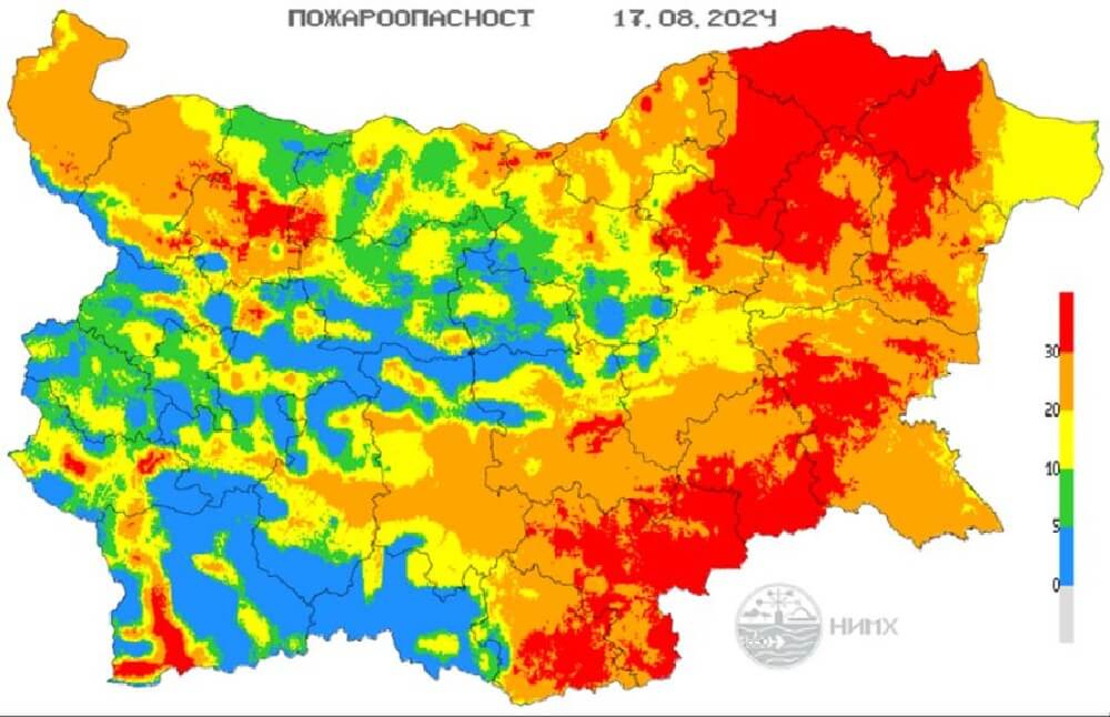 В по-голямата част от Хасковска област индексът за пожароопасност е червен. Това означава, че има екстремален риск от възникване на горски и полски пожари и от тяхното бързо разпалване.