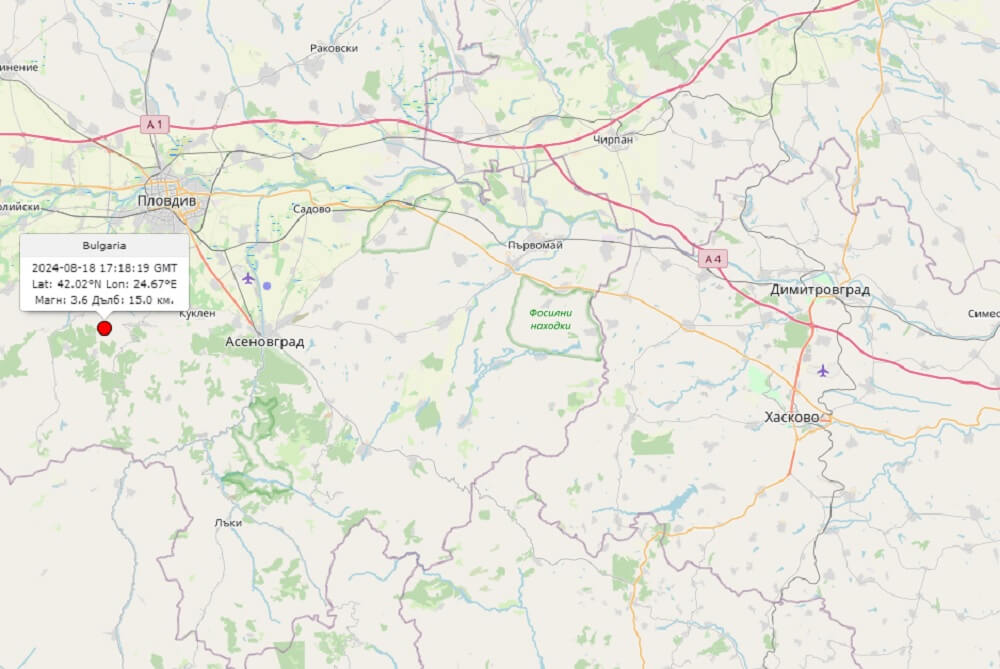 Земетресение край Пловдив се усети в Хасково и региона