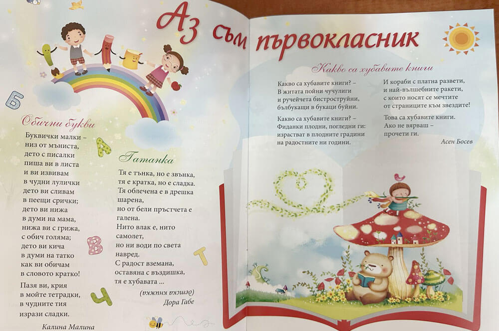 Това ще е изданието „Добре дошъл, първокласник“. В сборника са поместени най-обичаните български стихотворения за деца, кратки исторически данни за първоучителите Кирил и Методий и българската азбука, за българското знаме и народните будители, за великите български владетели, за националните герои и други.