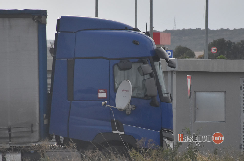 Тир с антена престоява до кръговото пред завода на пътя Хасково - Димитровград.