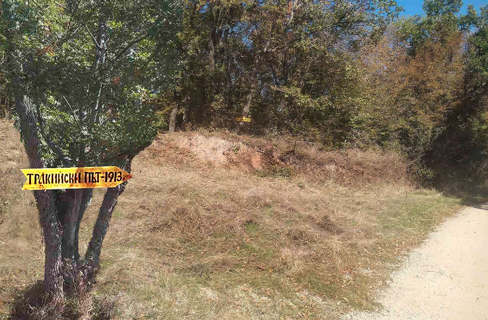 Стрелки с надпис „Тракийски път-1913“ насочват туристите от района на Мемориалния комплекс към близкото село Черничино.