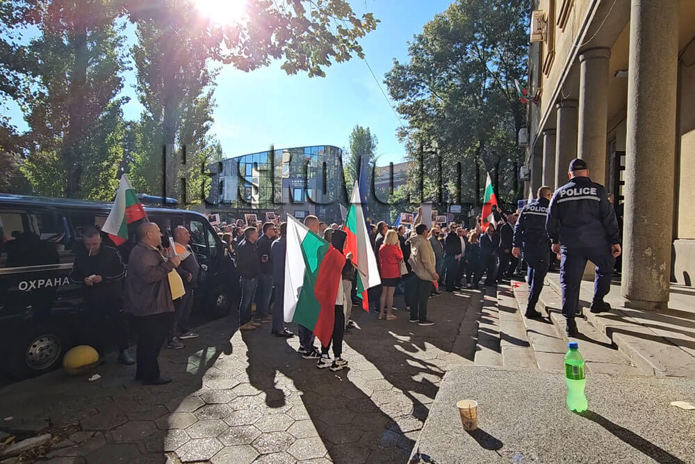 Протестиращи от региона и страната затвориха движението по централни булеварди заради започналото в 10 часа дело в хасковския съд за мярката за неотклонение на кмета на Минерални бани Мюмюн Искендер, сина му Али Али и Байрям Иляз.