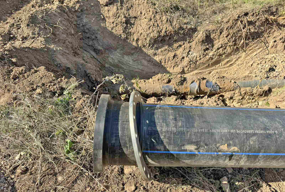 Става въпрос за изключително компрометиран участък от железния водопровод. Поставена е полиетиленова тръба с висока плътност Ф 400.