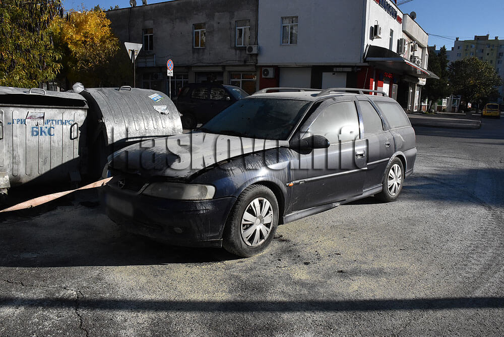 Колата е пламнала до контейнери за боклук в района на комплекс „Веспрем“. На място пристигна и екип на пожарната, който овладя ситуацията.