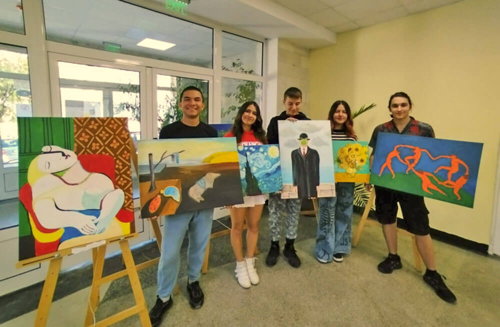 Ученици от специалност „Рекламна графика“ при ПГТ „Александър Паскалев“ в Хасково отбелязват Международния ден на художника с изложба във фоайето на гимназията.