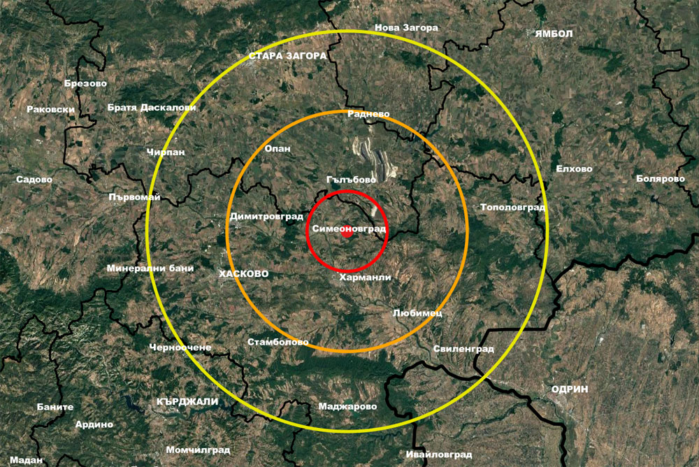 Епицентърът е с дълбочина 13 километра и е на 8.8 километра на изток от Симеоновград, на 20 километра от Димитровград и на 30 километра от Хасково.