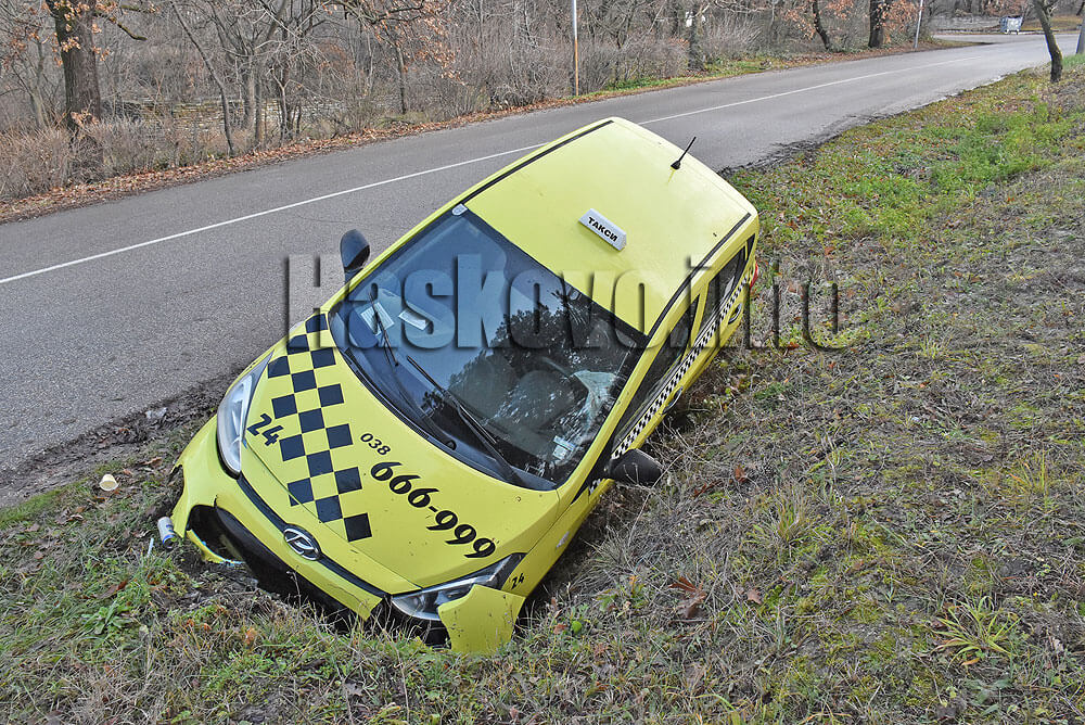 Таксито се е движило от града в посока Старческия дом. На завой автомобилът е излязъл от пътя и е паднал в канавка.