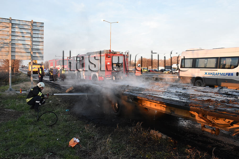 Предполага се, че спирачките на ремаркето са прегрели и така се е стигнало до пожара.