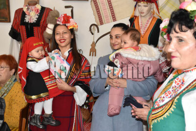 БабинденВ ритуала участваха баба Станка, малките Теодора и Камелия и техните майки Таня Тодорова и Зорка Заркова от село Динево. Децата получиха мартенички и парички от бабата, която от своя страна прие дарове от майките.