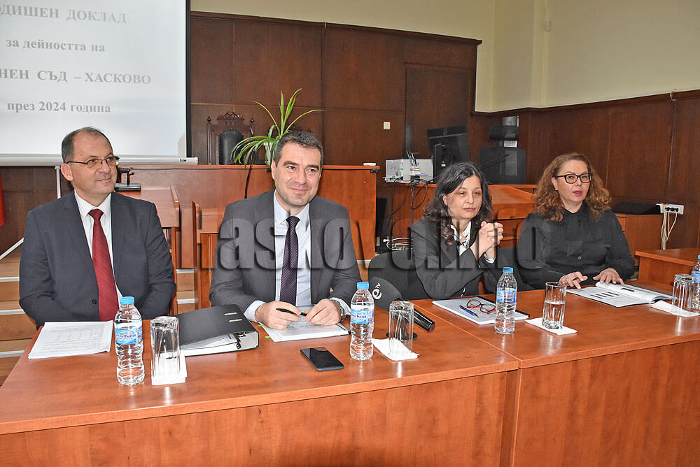 Годишният доклад беше обсъден на общо събрание на Районен съд – Хасково, в което участваха още председателят на Административен съд – Хасково Василка Желева, районният прокурор на Хасково Румен Сираков и служителите на съда.