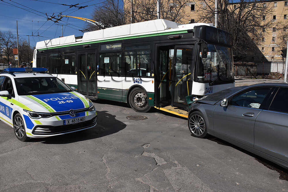 Тролеят се е движил по булевард „Васил Левски“ и при опит за ляв завой в посока жп гарата е засякъл идващия насреща по същия булевард Мерцедес.