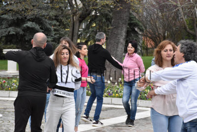 Хасковлии танцуваха до монумента „Света Богородица“. Видеото от тяхното изпълнение ще бъде изпратено на организаторите на международната проява, които ще го включат в репортажа си от всички точки по света.