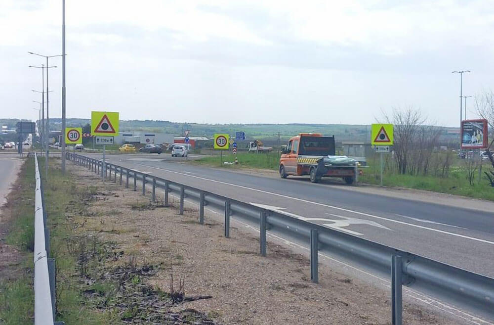 Днес се поставят нови знаци при кръговото кръстовище, които сигнализират за участък с концентрация на пътнотранспортни произшествия, за предстоящо кръгово кръстовище и ограничение на скоростта. В района на кръстовището ще бъдат монтирани общо 30 знака, с което ще се заостри вниманието на шофьорите и ще се повиши безопасността на движение.