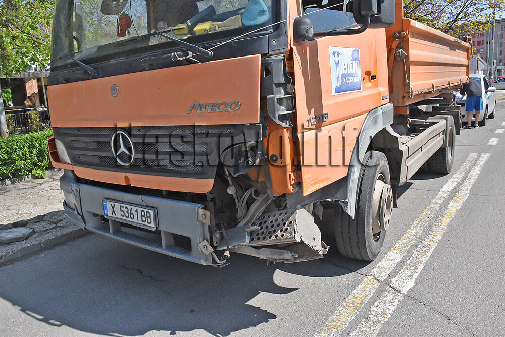 Товарен автомобил на ВиК и лека кола катастрофираха преди обяд при кръстовището на площад „Лебеда“ в Хасково.