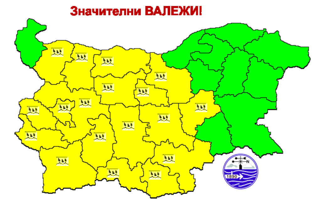 Предупреждението е в сила за всички общини с изключение на Тополовград.