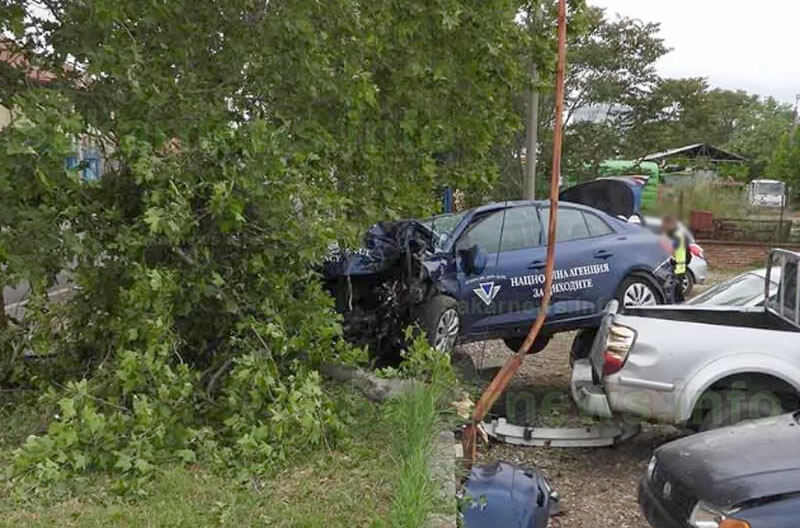 Кола на НАП повали дърво и влетя в автокъща в Харманли
