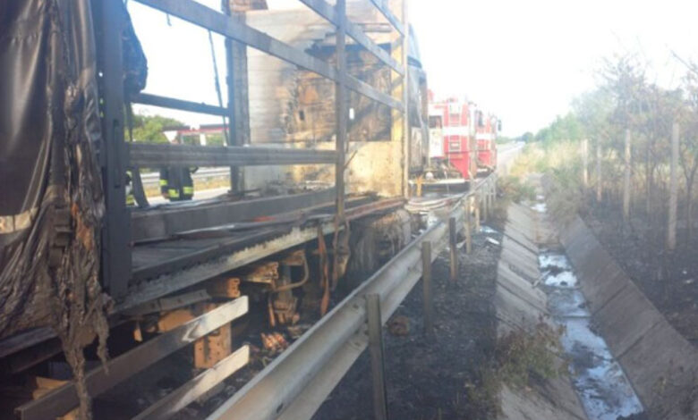 Горящ тир предизвика 5 пожара по магистрала „Марица“, шофьорът е със счупен крак