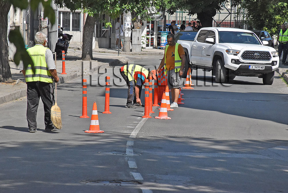Започна поставянето на разделителни колчета на улици в Хасково, където системно се паркира неправилно.