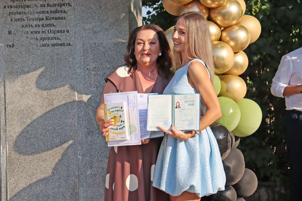 „Най-голямата награда за един учител и директор е да поздрави своите ученици за израстването, за успехите, за благородството и щастието да са полезни за другите. Пожелавам Ви увереност по пътя на мечтите“, обърна се към абитуриентите Топалова.