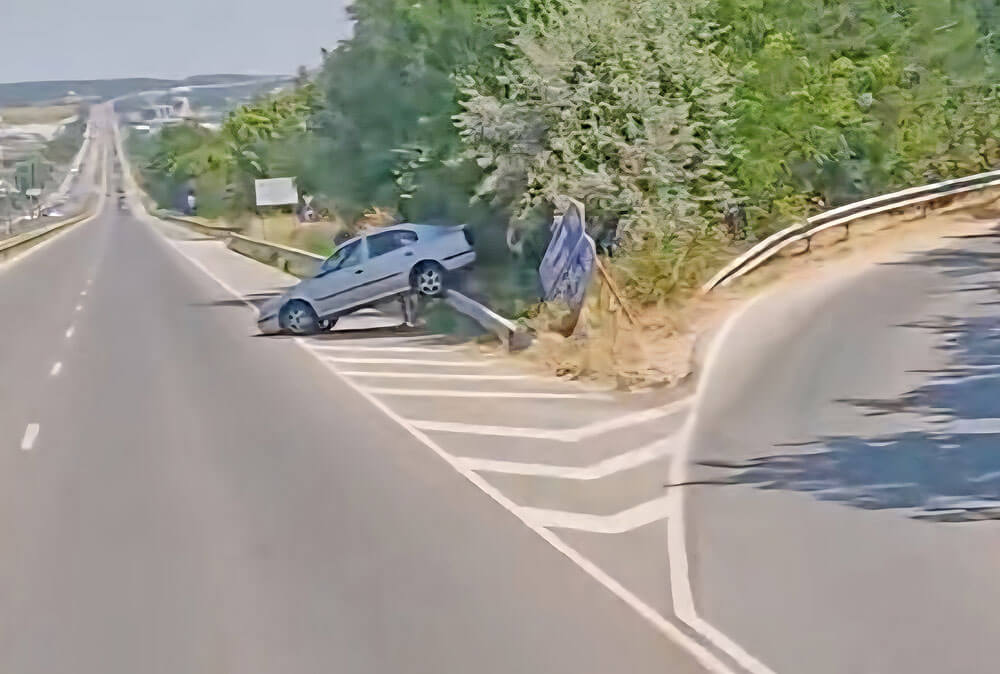 Инцидентът е станал до отбивката за Пловдив. Колата се е ударила в табели, след което е продължила движението си и се е качила върху мантинела, като беше заснета от членове на фейсбук група.