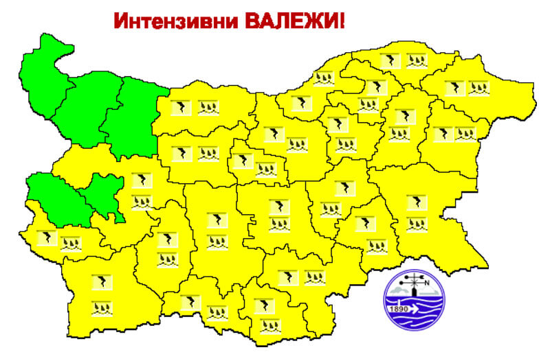 Очакваните количества дъжд са между 20 и 35 литра на квадратен метър за 24 часа. Максималните температури ще са около 32 градуса.