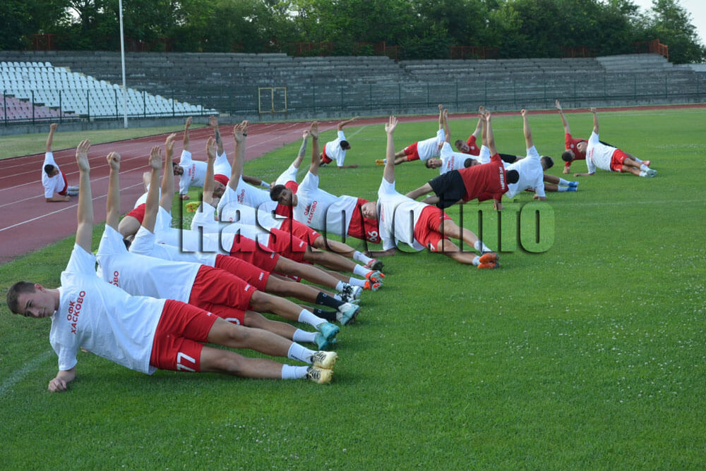 Треньорът Живко Желев изведе група от 25 футболисти за първа тренировка на стадион „Хасково“. Владо Милев ще отговаря за подготовката на вратарите.