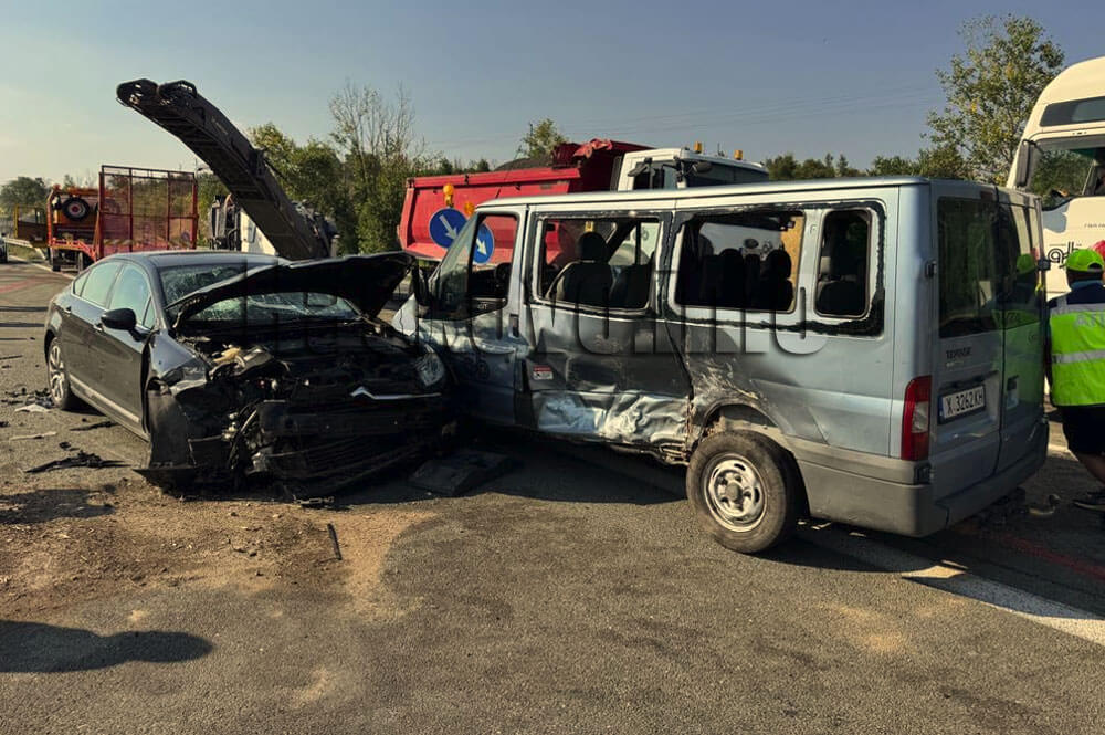 Микробус с работници и лека кола са катастрофирали следобед при 69 километър на магистрала „Марица“ в района на Харманли в посока Любимец, където се извършват ремонтни дейности.