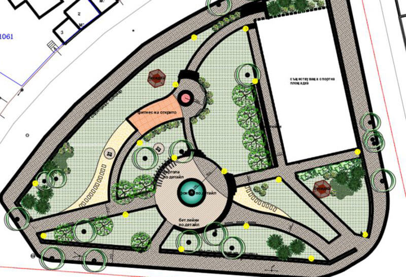 Формират се две основни функционални зони – паркова и спортна, всяка със собствени подзони и елементи.