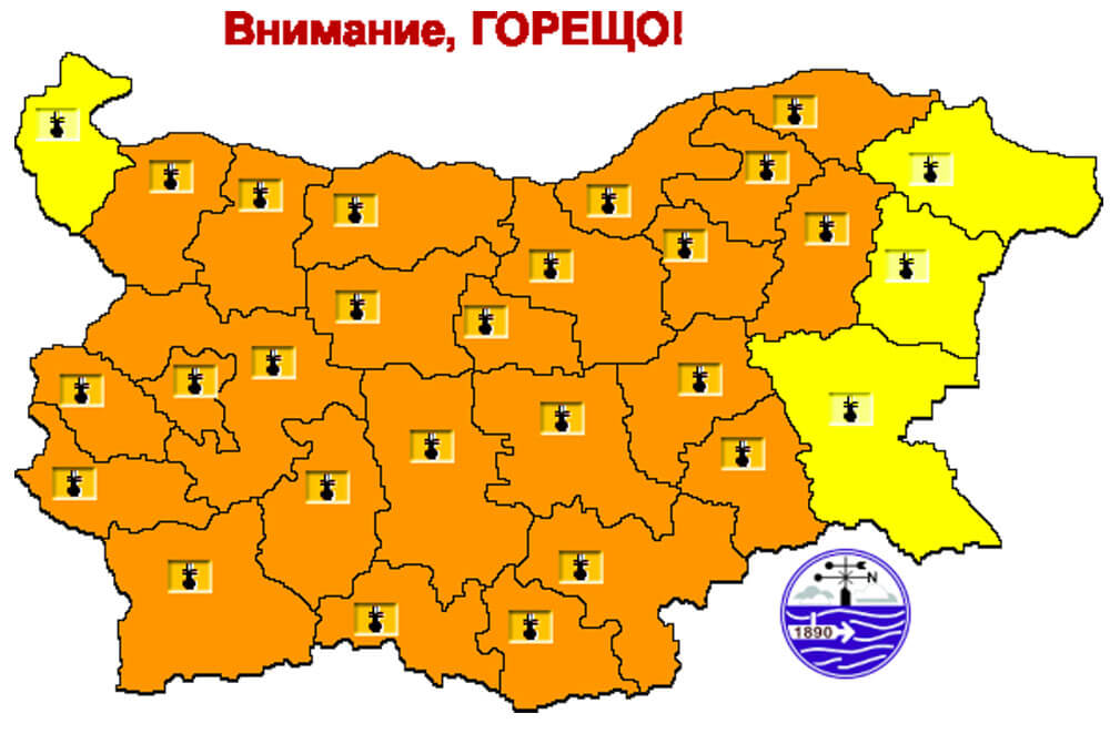 Времето ще е горещо с максимални температури между 38 и 41 градуса. Жегите ще продължат до края на седмицата.