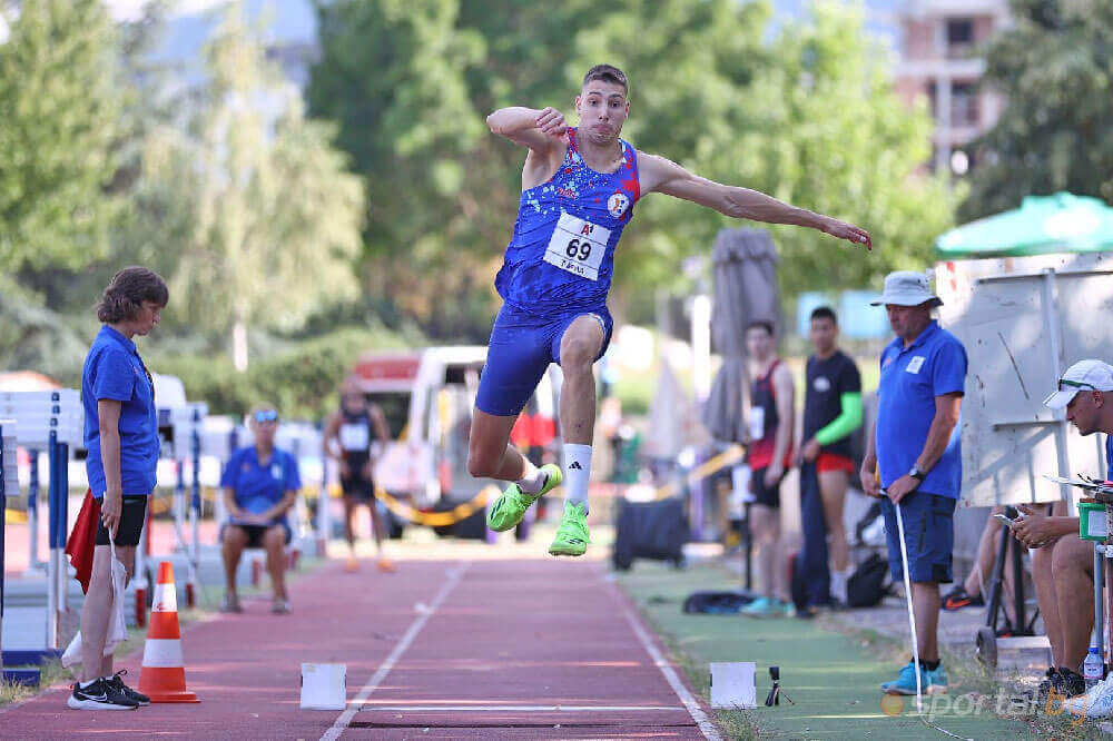 На стадиона на НСА състезателят на Хеброс (Харманли) спечели с 16,47 м. Среброто с 15,10 м е за Николай Йорданов (Лудогорец), а трети е Димитър Ташев (Михаил Желев) с 14,81 м. В неделя Саръбоюков ще гони и титлата в скока на дължина, съобщава bgathletic.com.
