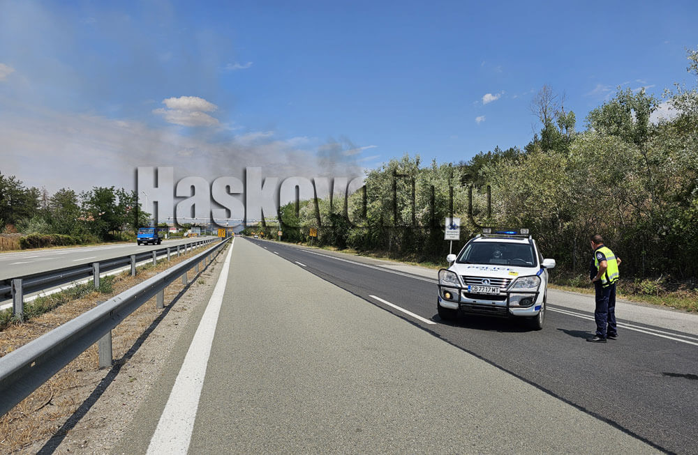 Автомагистрала „Марица“ беше затворена за движение малко преди обяд заради задимяване от бушуващия трети ден пожар на територията на общините Харманли и Любимец.