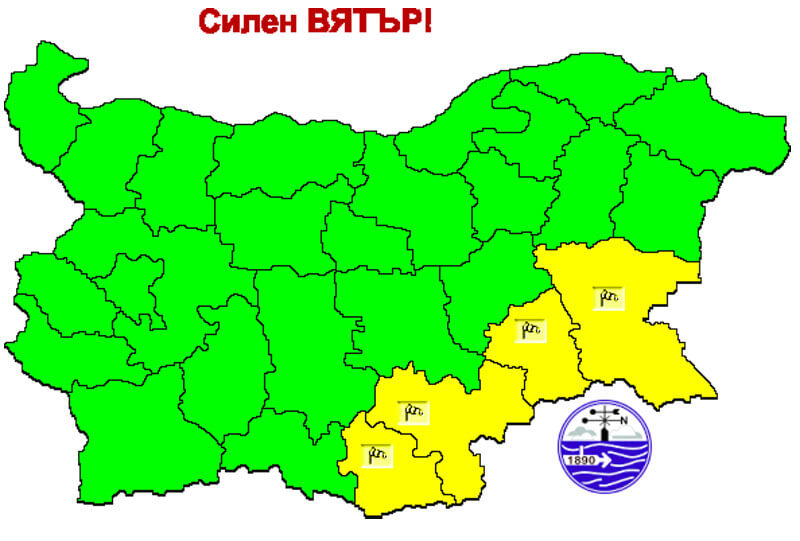Ще духа временно силен вятър от изток-североизток с пориви до 90 км/ч.