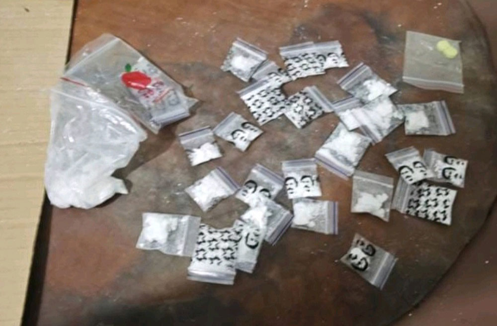 От адресите са иззети и 2 жълти таблетки, 2 везни и множество празни полиетиленови пликове с клипс. При претърсването са открити още 7 грама суха листна маса с мирис на марихуана.