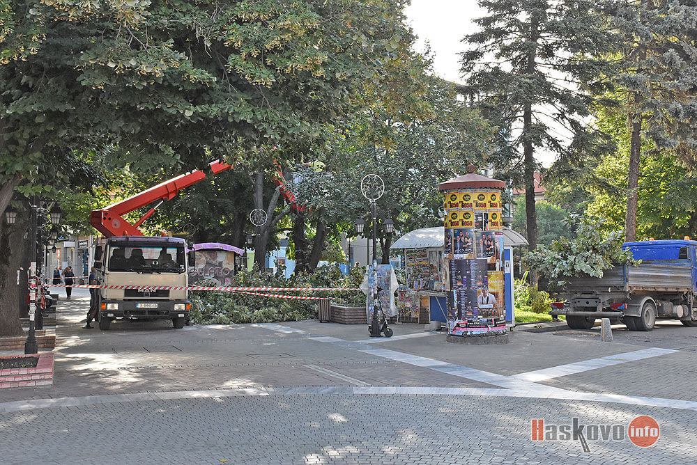 Санитарна сеч с помощта на вишка се извърши преди обяд в центъра на Хасково.