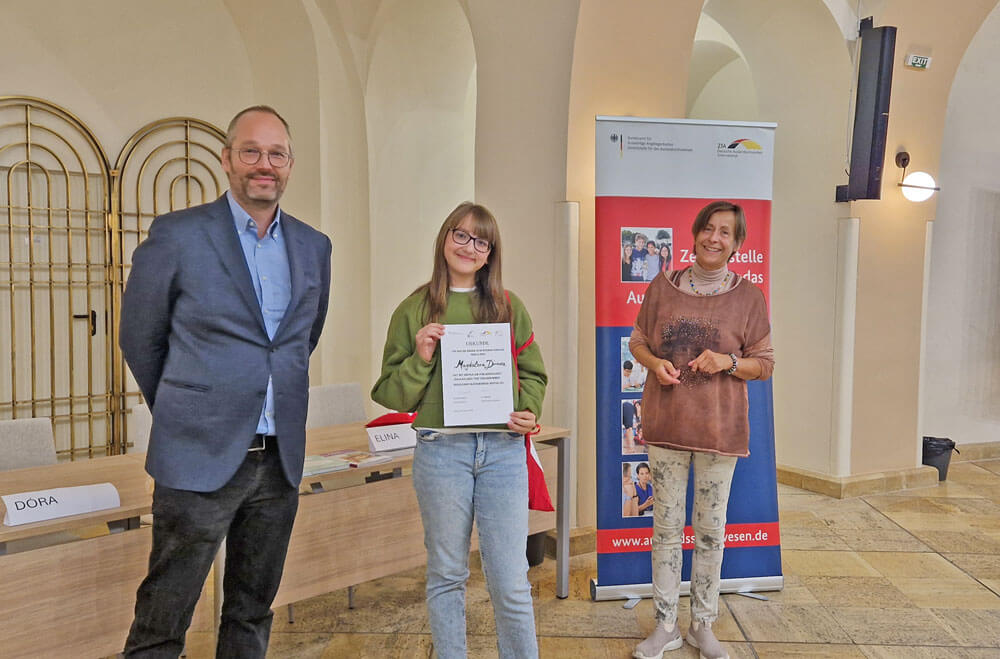 Успехът на Магдалена се дължи и на подкрепата на нейните учители по немски и български език – Галина Камбурова и Жанета Матанова.