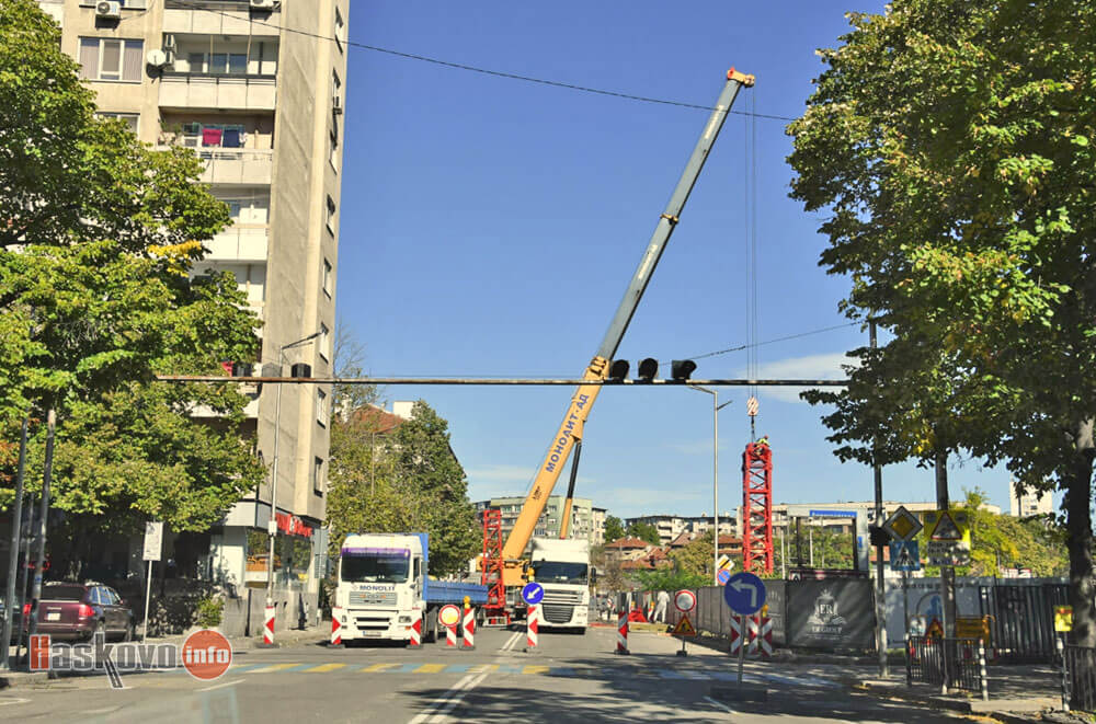 Разтоварването на елементи за строежа до ОУ „Христо Смирненски“ затвори временно булевард „Стефан Стамболов“ в Хасково.