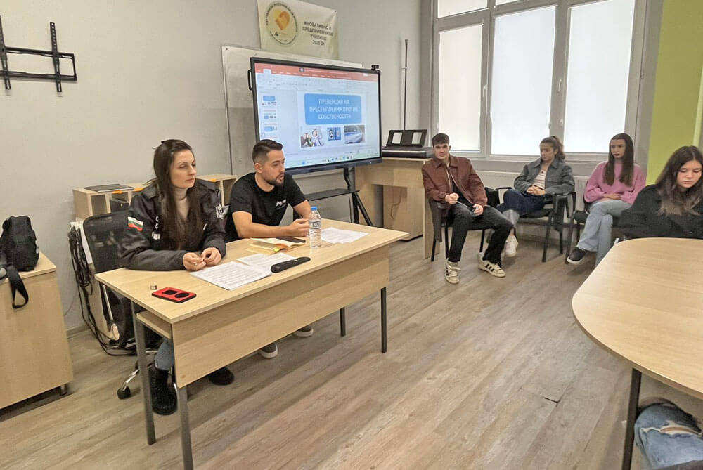 Ученици от 12 клас в ЕГ „Проф. д-р Асен Златаров“ в Хасково участваха в лекция на тема „Престъпления против собствеността“.