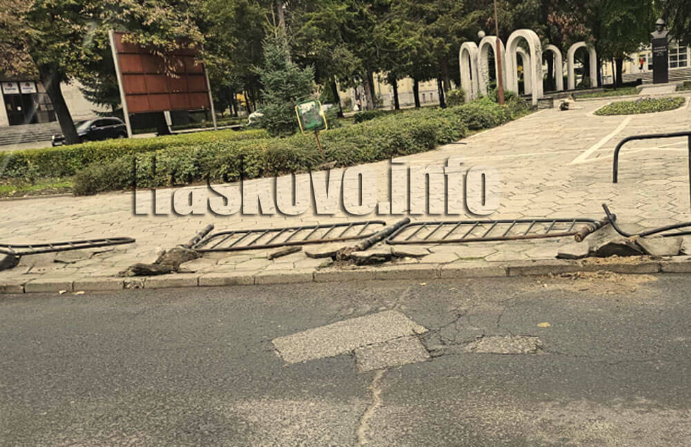 Кола разби заграждения в центъра на Хасково