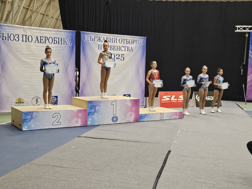 Сребърен медал за Ирем Мюмюн в индивидуалната надпревара и 4-то и 5 -то място Виктория Вълчева и Зорница Бисерова, а трите заедно при малките формации спечелиха бронзов медал.