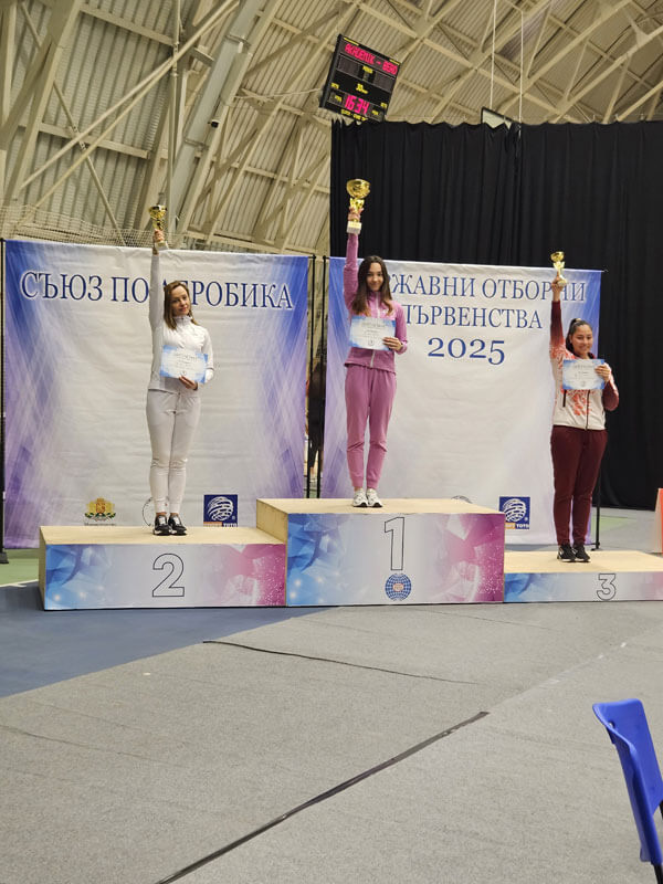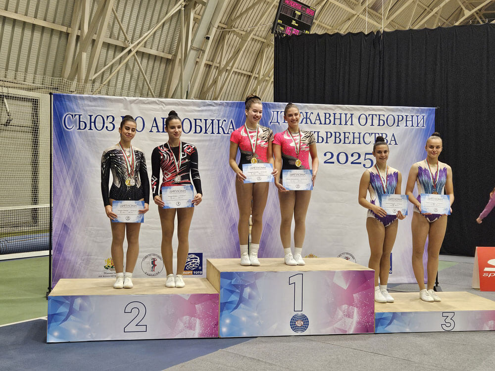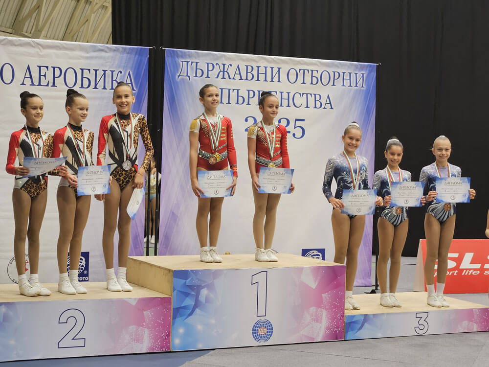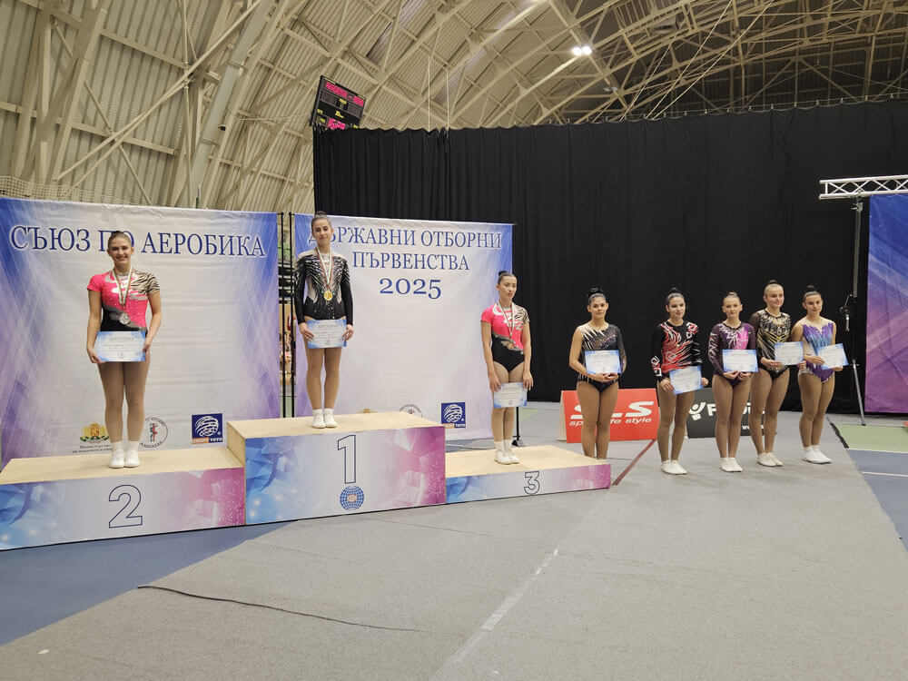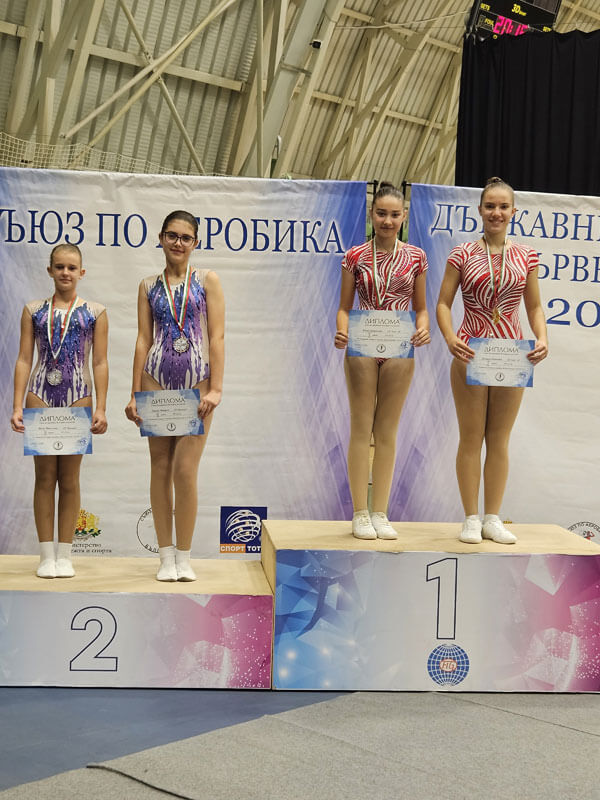 Сребърен медал за Ирем Мюмюн в индивидуалната надпревара и 4-то и 5 -то място Виктория Вълчева и Зорница Бисерова, а трите заедно при малките формации спечелиха бронзов медал.