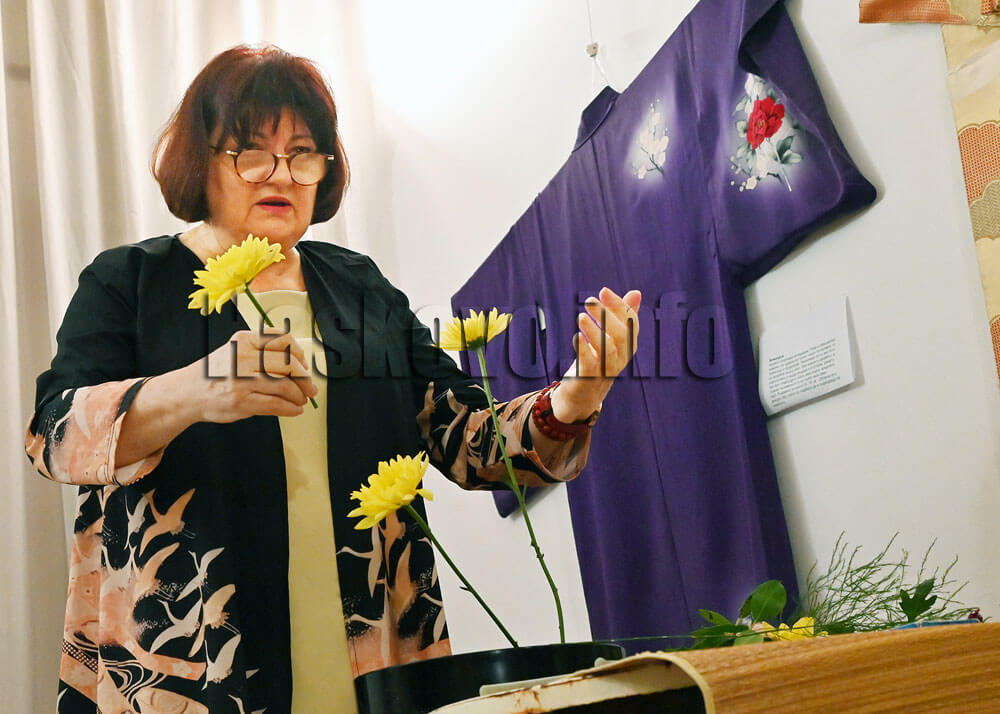 Валентина Герова, председател на сдружение “Сога“ за популяризиране на източна култура, и лицензиран преподавател по икебана, подчерта, че това древно изкуство е средство за постигане на хармония и добро настроение в дома. Икебаната е форма на медитация, може само с едно клонче или цвете да се направи хубава композиция.