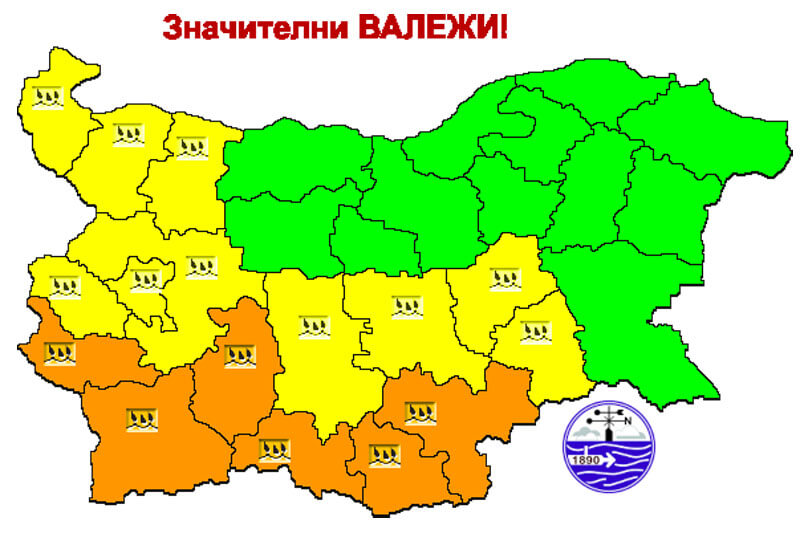 Очакваните количества на валежите са между 35 и 65 литра на квадратен метър.