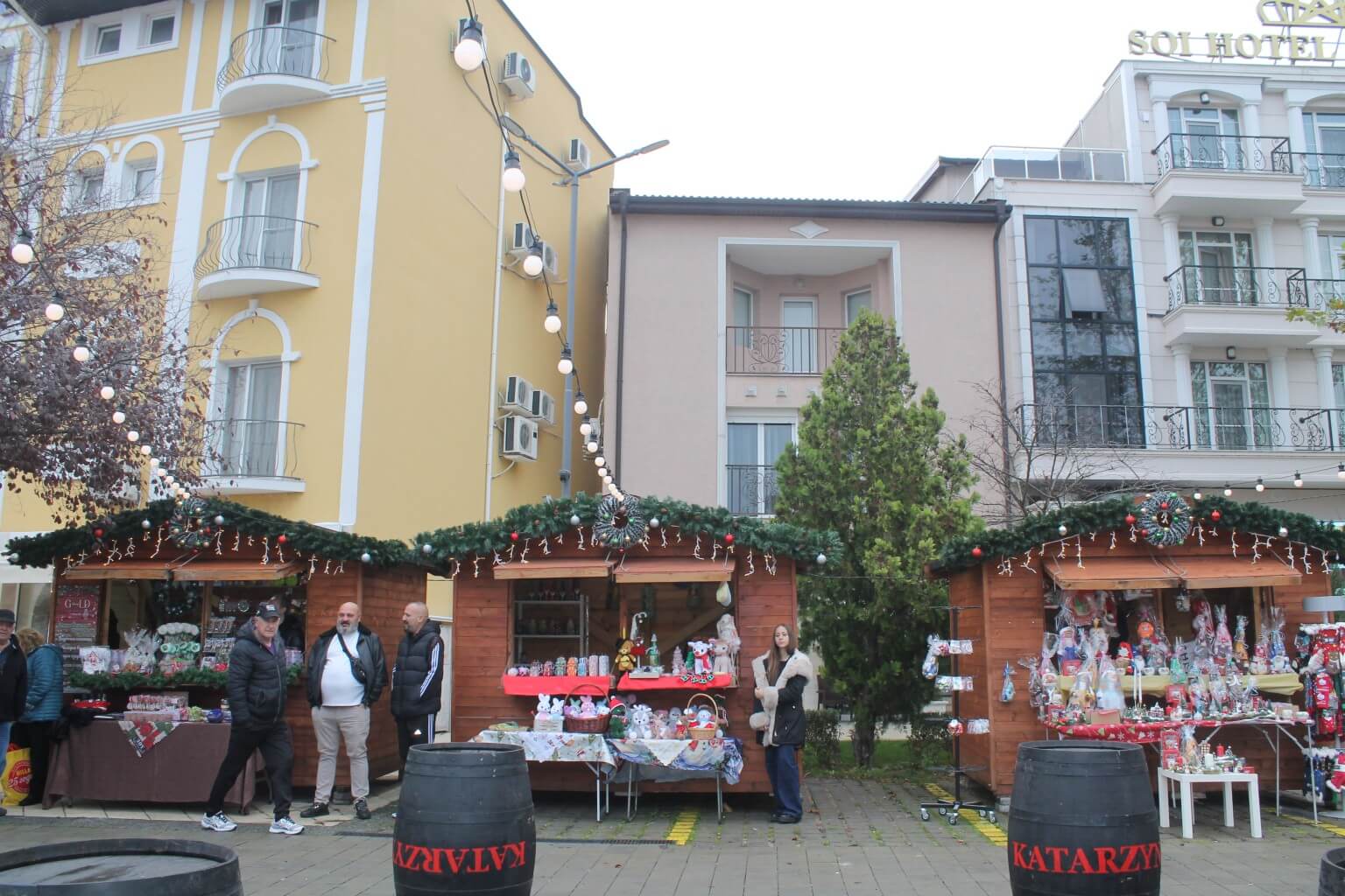 Тази година в базара участват само местни производители, занаятчии и търговци. В празнично украсените 10 дървени къщички традиционно се предлагат вина, топла скара, пчелни и био продукти, ядки, различни ръчно изработени украси, играчки, подаръци и сувенири, плетива, коледни свещи, сладкарски и тестени изделия. Както винаги, една от къщичките е предоставена за провеждане на благотворителни каузи на различни организации.