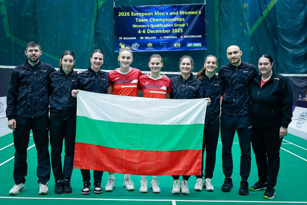 Женският национален отбор на България се наложи над Швейцария с 3:2 и записа трети пореден успех на Европейската отборна квалификация по бадминтон, която се проведе в София, съобщават от федерацията.