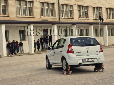 Автомобилният състезател Илия Царски изнесе лекция по пътна безопасност, след което направи демонстрации в Хасково.