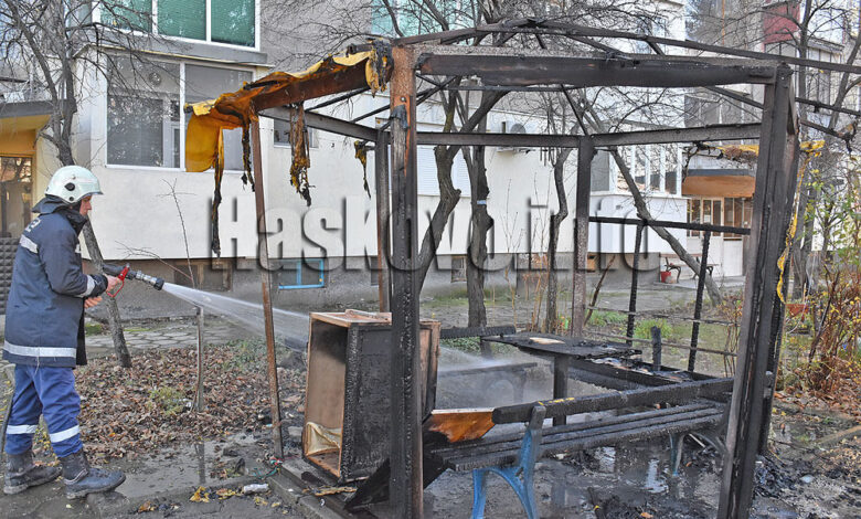Изгоря беседка пред жилищен блок до новия парк в Хасково