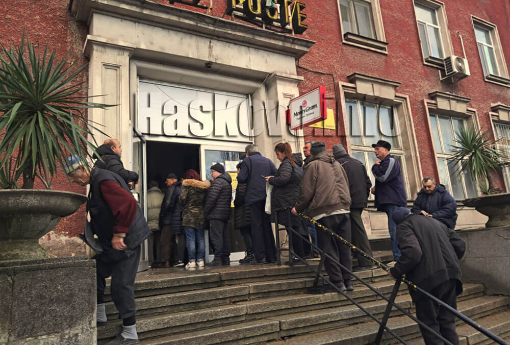 Тази сутрин пред централната поща в Хасково се образува опашка от чакащи пенсионери. До входа имаше и екип на Общинска полиция.