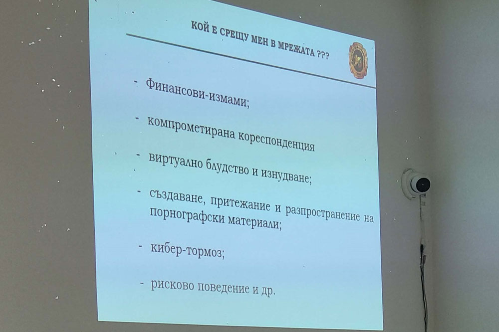 Полицейските служители от ГДБОП запознаха зрелостниците с информация за това как могат да попаднат в различни измамни схеми, как могат да злоупотребят с личните им данни, какви са опасностите, които крият социалните мрежи, както и какви са най-честите измами при онлайн пазаруването.
