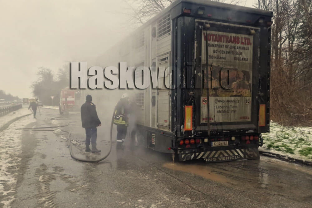 Товарен автомобил, превозващ прасета се запали на пътя между Хасково и Димитровград.